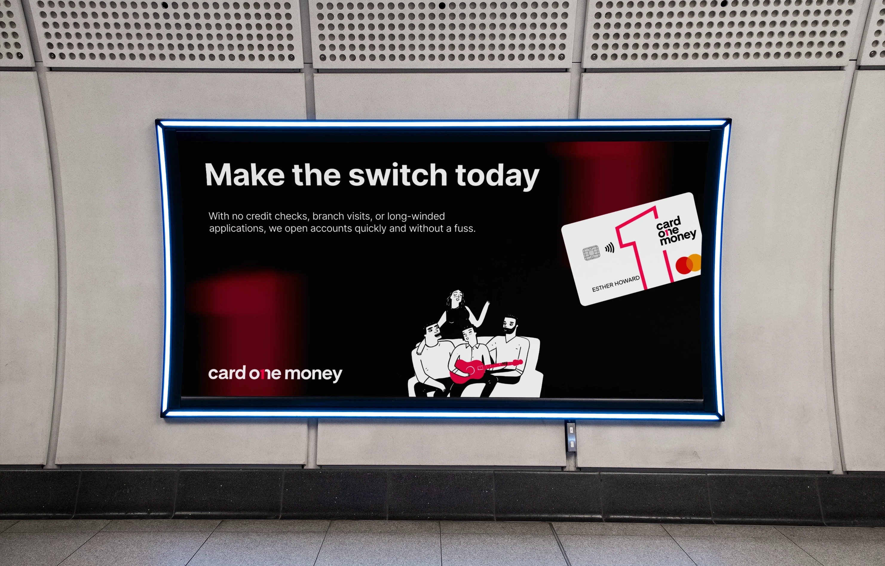 Card One Money had a promise to keep: two decades of trust, and a commitment to never leave anyone behind. The challenge was to evolve the brand without losing the familiarity and reassurance that people had come to rely on. I built an identity around that principle. A wordmark that feels contemporary but not exclusive, confident without being distant. The colour palette shifts away from cold fintech blues towards something warmer and more human, designed to feel accessible at every touchpoint. Card artwork was treated as something to be earned, not just issued, giving it a sense of value and presence in the hand.